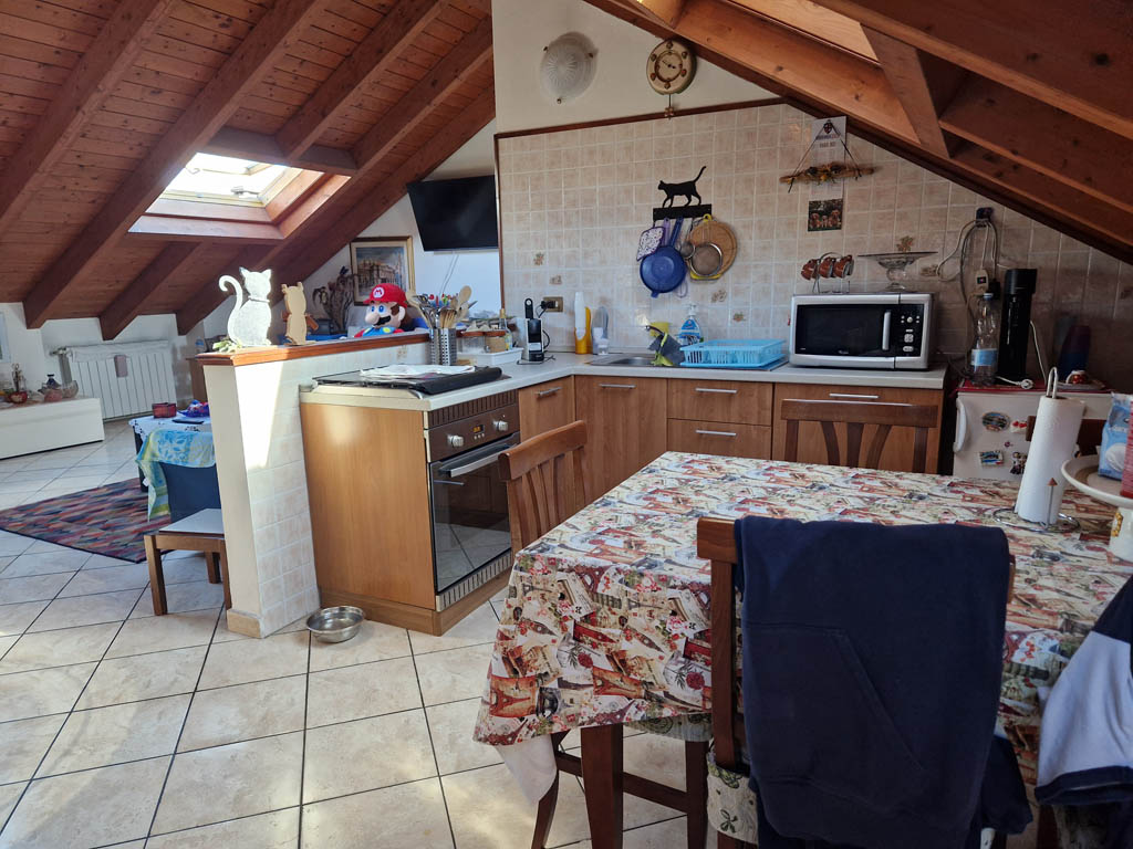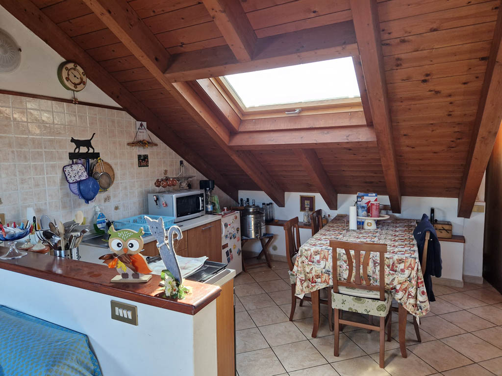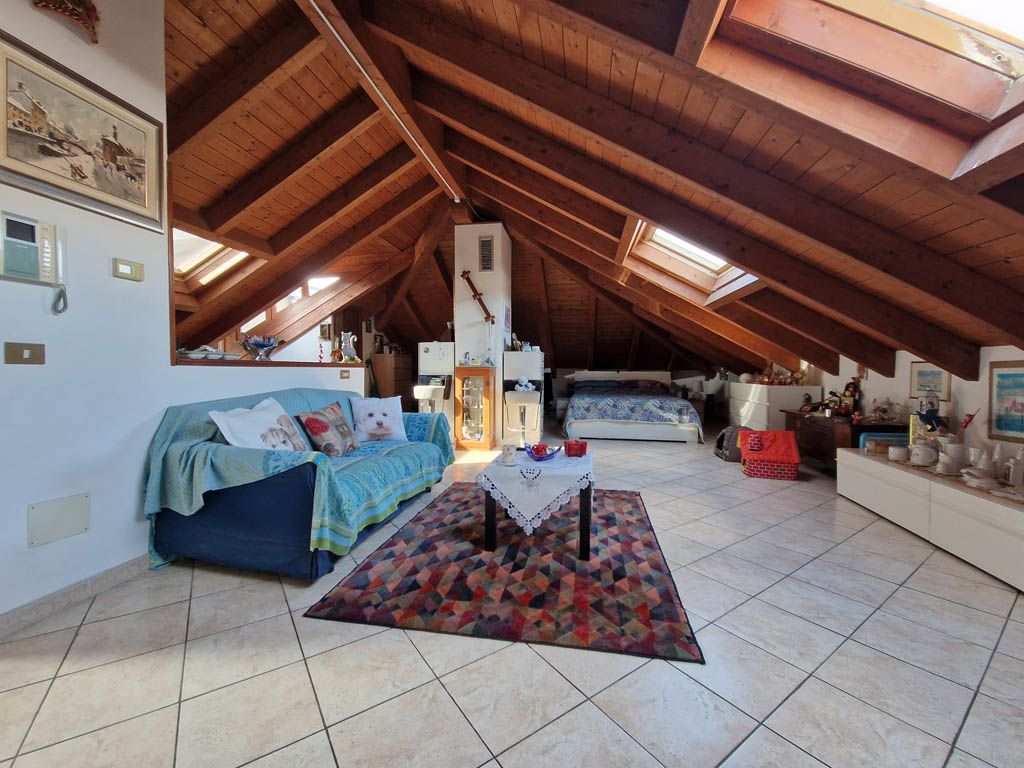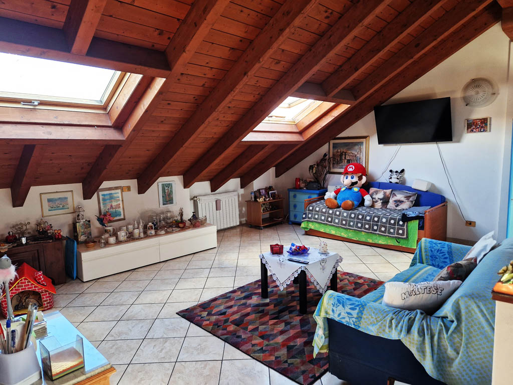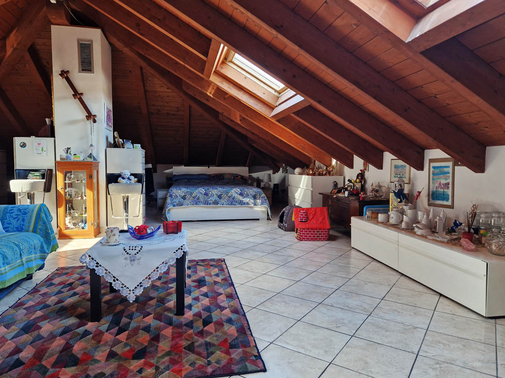 Sovrastante all’appartamento si trova un grande sottotetto di circa 100 mq, completamente rifinito e molto luminoso, utilizzabile come: