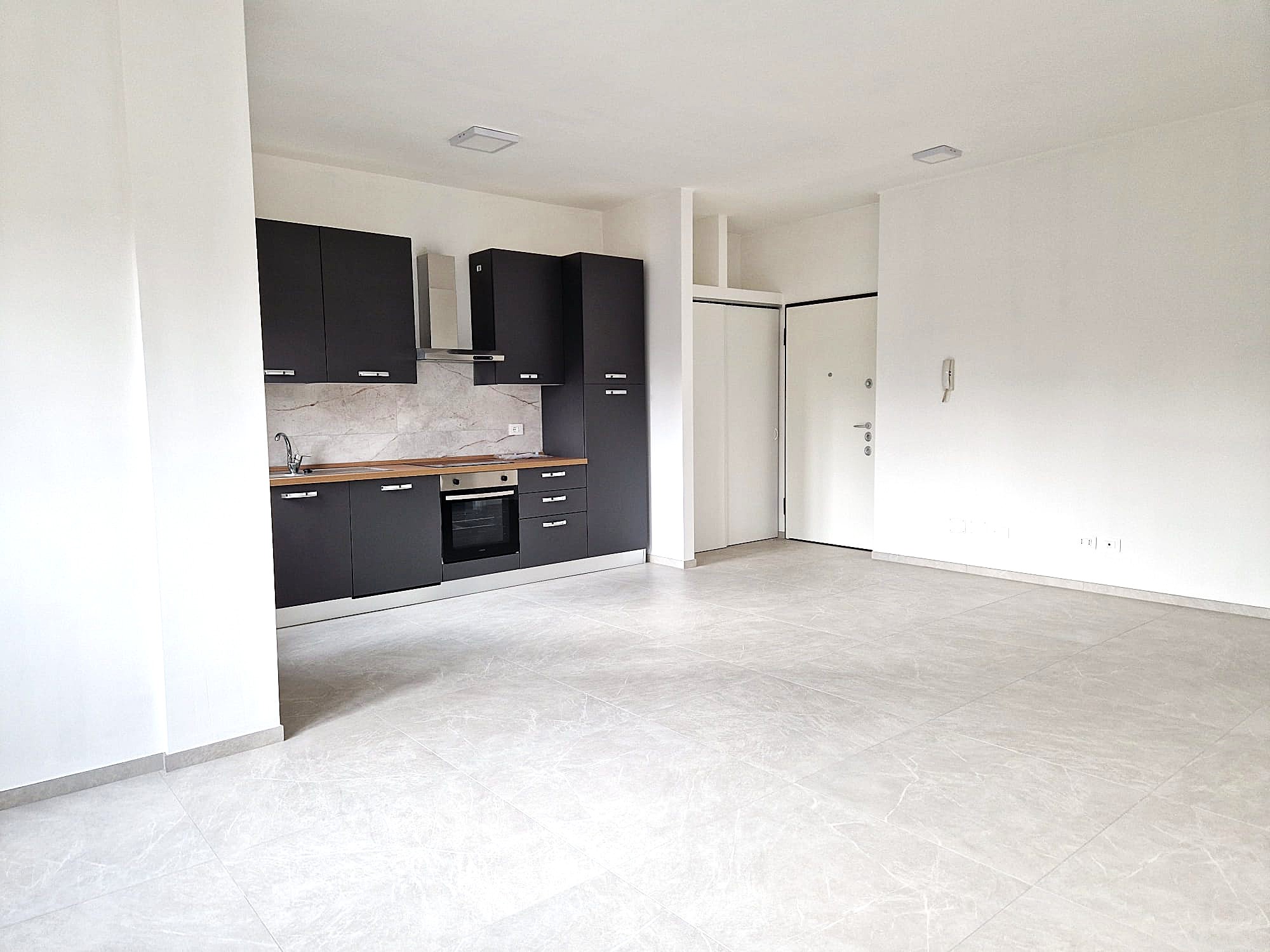 Zona Giorno: Ingresso su ampio soggiorno con cucina a vista e accesso diretto al balcone.