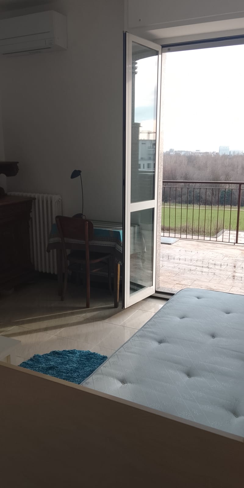 La camera è ampia, molto luminosa grazie all’esposizione a Est e dispone di un
