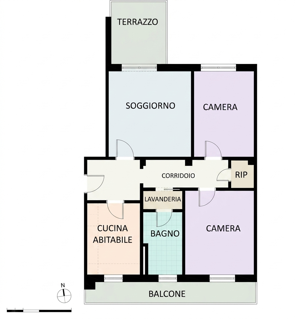 L’appartamento sorge in una posizione strategica e tranquilla, ideale per chi cerca la vicinanza ai principali servizi senza rinunciare alla riservatezza.