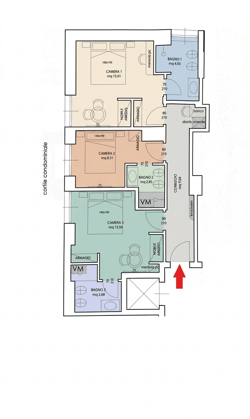 L’immobile è stato progettato per garantire privacy e comfort, con finiture moderne e luminose. La disposizione interna prevede: