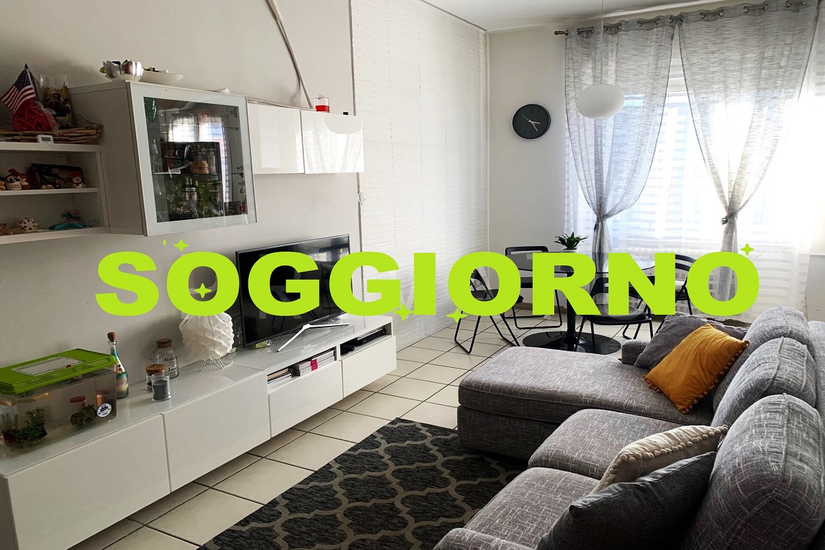 Soggiorno con cucina a vista.