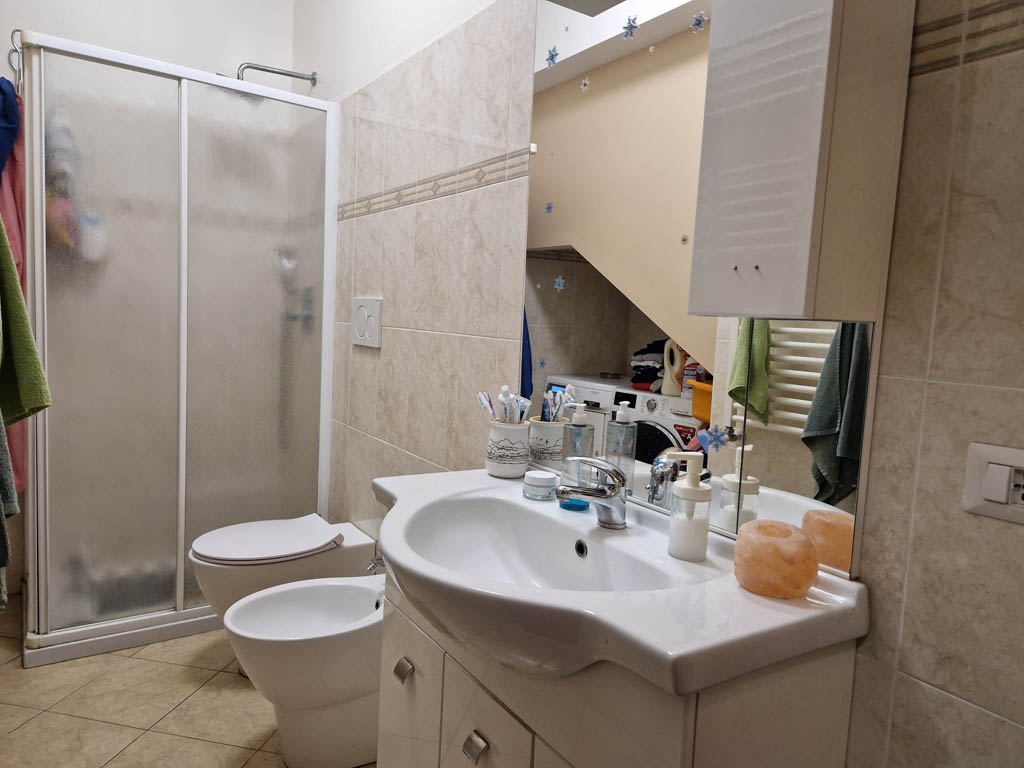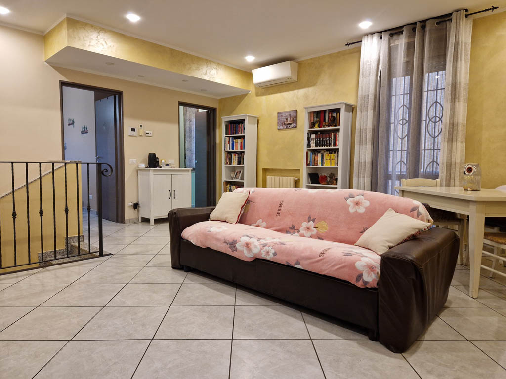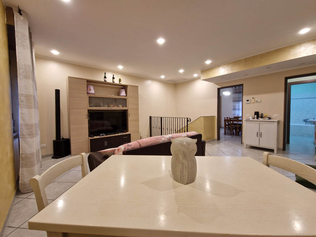 Disposta su due livelli, oltre a un’ampia cantina, è composta da: cucina abitabile, sala, tre camere da letto e due bagni. Completano la proprietà un balcone, un terrazzino, cantina e piccolo solaio.